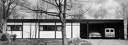 A mí, sin embargo, lo que más interesante me ha parecido de este párrafo es que parece ser que oficialmente (e indirectamente, por supuesto, y sin darle ningún bombo) se le atribuye el diseño de la casa Rand, en Weston, Connecticut. Esta casa es muy famosa por haber sido desde que la construyeron juntos en 1953, un epítome de estética moderna y simplicidad japonesa, y que tras su separación, se quedaría por descontado Paul Rand, viviendo allí hasta su muerte en 1996 y se convertiría en la mítica propiedad con mucho valor histórico y artístico que es hoy en día.